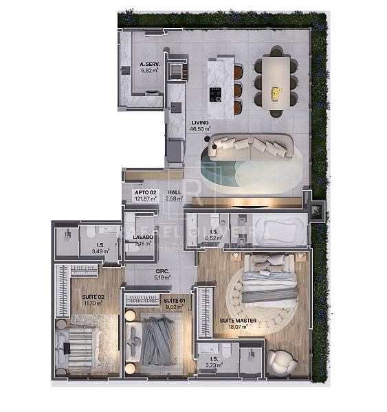 3 suítes – 121,87 m² disponíveis