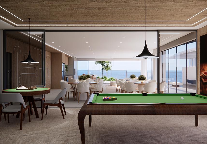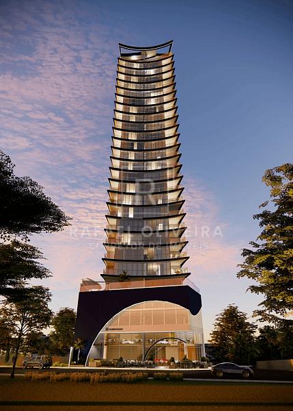 Empreendimento de torre única com 28 andares sendo apenas 3 apartamentos por andar, todos com vista permanente para o mar, conta ainda com uma sala comercial em seu anexo com pé direito duplo e mezanino.