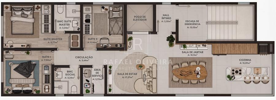 Com um design sofisticado que se reflete nas áreas sociais integradas e na vista espetacular do mar, tornando ainda mais especial!