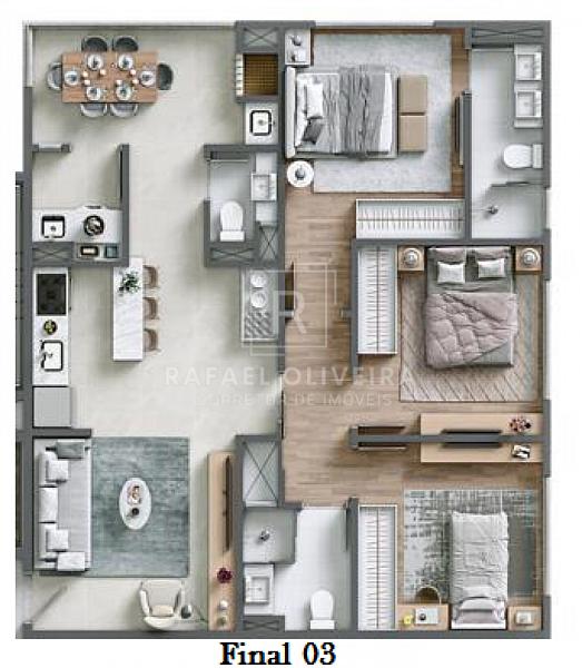 O apartamento está localizado em andar alto e conta com 3 dormitórios sendo 1 suíte, amplo living integrado com a área gourmet proporcionando uma vista mar permanente para a praia do Jacques em Balneário Piçarras, sua face lateral sul está posicionada no sol da manhã, já os dormitórios estão localizados na face oeste com um lindo pôr do sol!