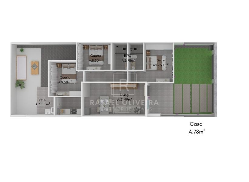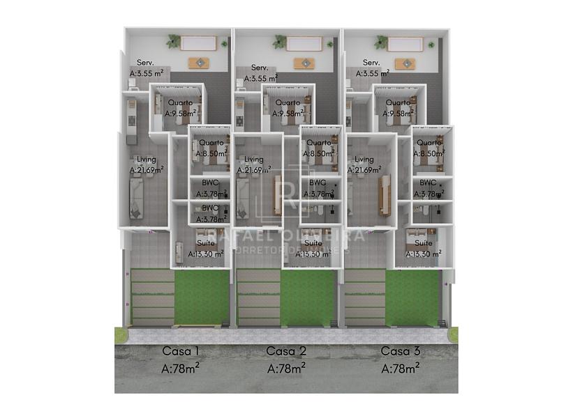 • Distribuição: 3 Quartos, sendo 1 Suíte privativa.