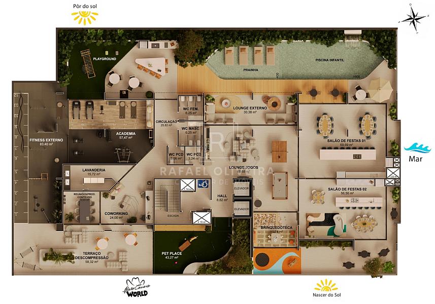 • Lazer no Rooftop: Piscina, academia e salão de festas entregues equipados e decorados.